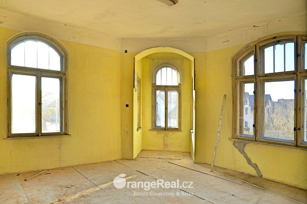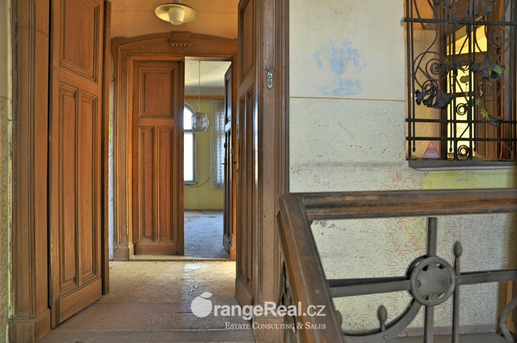 V zastoupení klienta nabízíme k prodeji unikátní pozdně secesní vilu v Pardubicích, umístěnou ve vilové čtvrti Bílého předměstí, na rohu ulic Sakařova a Wintrova. Vila byla dle dokumentace dokončena 31. 12. 1919 a je umístěna na pozemku o celkové výměře 1.043m2. Zastavěná plocha domu je 237m2, celkově tak vila nabízí 711m2 hrubé podlahové plochy ve třech nadzemních podlažích včetně půdy, dům je částečně podsklepen. Součástí zastavěného nádvoří je cca 40m2 plochy bývalé dvou garáže. Domu dominuje pískovcové točité schodiště, které dispozičně člení dům následovně: 1. PP sklep se sníženým stropem (umístěný plynový kotel), 1. NP zvýšené, samostatná bytová jednotka o cca 190m2 s dvěma přístupy na zahradu, 2. NP samostatná bytová jednotka o cca 190m2 s balkonem, 3. NP – velkorysá půda s potenciálem vybudování dalších obytných prostor. Dle zápisu v KN vila disponuje 6 bytovými jednotkami (podstatné pro budoucí kolaudaci a rekonstrukční souvislosti). Stavebním prvkem základů a podezdívky je kámen, zbytek konstrukce cihla, stropy dřevěné, okna původní dřevěná špaletová, schodiště pískovcové, krov dřevěný, střecha pálená taška. Dům je napojen na všechny sítě (voda, elektřina, kanalizace, plyn), je v původním stavu vyžadujícím rekonstrukci, která byla částečně započata.
