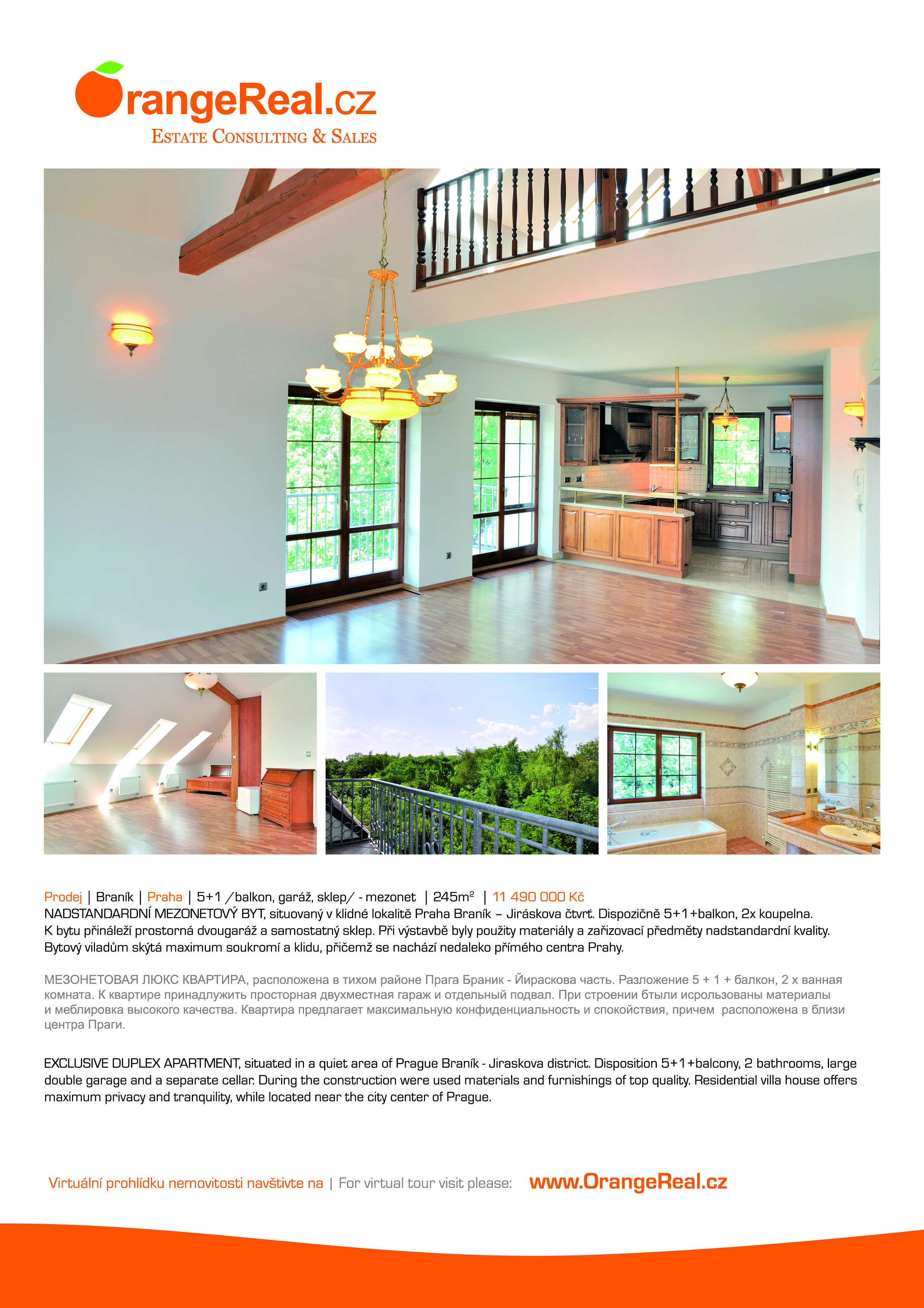 OrangeReal.cz prezentuje v srpnovém vydání magazínu ESTATE (estatemagazine.cz) prodej luxusního velkometrážního bytu (245m2) v Praze Braníku. Součástí bytu je také dvougaráž.