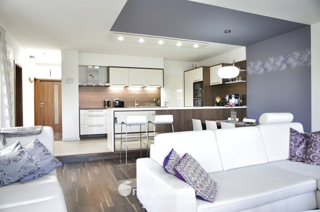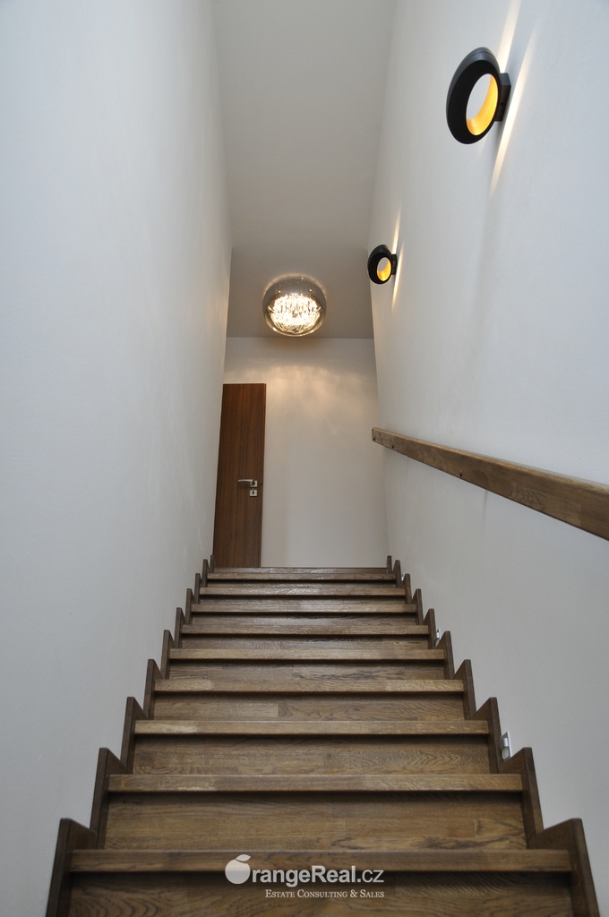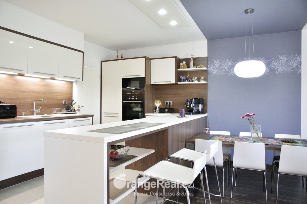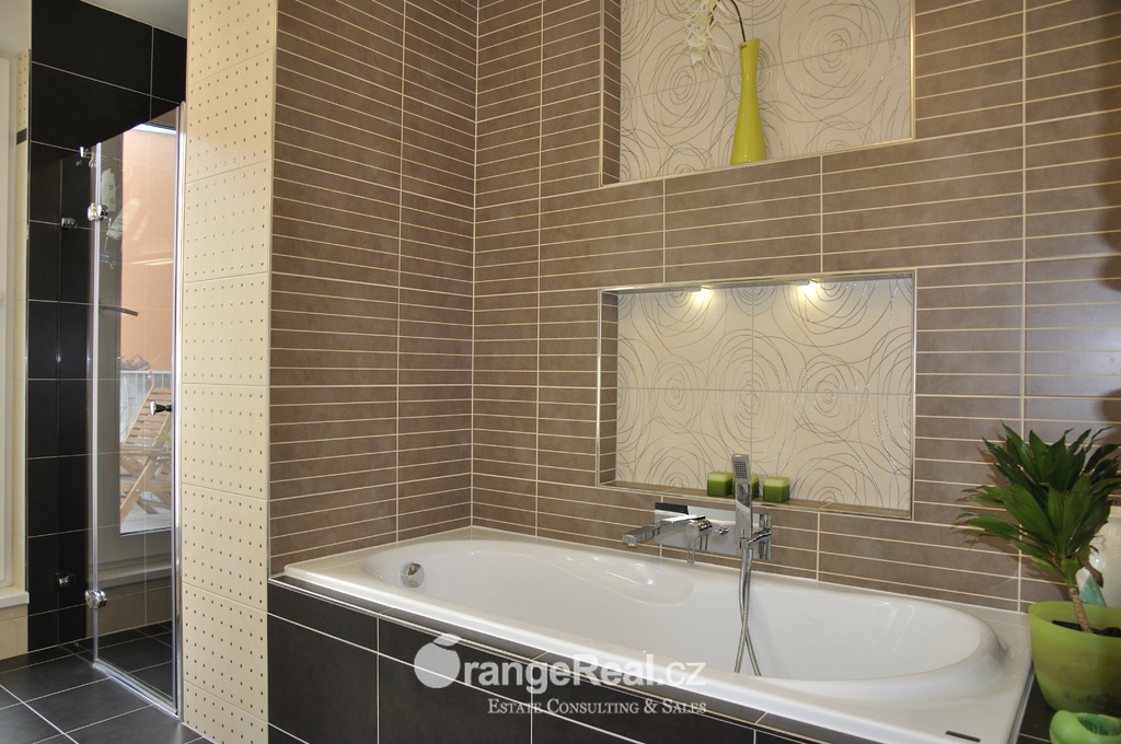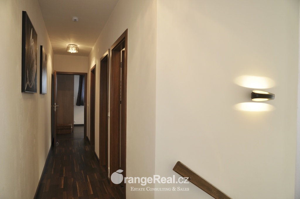Výhradně nabízíme k prodeji novostavbu nízkoenergetického rodinného domu v liniové zástavbě, ve vyhledávané lokalitě Lázně Bohdaneč. Dům o dispozici 5+kk+dvě terasy+garáž a obytné ploše 163m2, je umístěn na pozemku o rozloze 282m2. Zastavěná plocha 114m2. V I. NP se nachází vstupní chodba, koupelna s toaletou, ložnice a hlavní, prostorově nadstandardní, obytný prostor spojený s kuchyňským a jídelním zázemím a s výstupem na zahradní terasu a zahradu. Za kuchyní je skladová místnost, která zvyšuje úložné kapacity domu. Dále v I. NP nalezneme technickou místnost, kde je umístěn el. kotel a bojler na ohřev vody a vstup do garáže. Ve II. NP se nachází 3 prostorné místnosti, koupelna /sprch. kout, vana a 2x umyvadlo/, samostatná toaleta a výstup na terasu, orientovanou na jih. RD je vystavěn systémem Liapor, zateplení domu včetně střešní izolace provedeno v rozsahu nízkoenergetické stavby – tř. energ. náročnosti A, se ztrátou 47 kWh/m2/rok. Nízké náklady na vytápění podporuje také krbová vložka umístěna v obývacím prostoru. Vytápění RD je zajištěno rozvody podlahového vytápění v celém domě. Na návrzích interiérů a zahradních úpravách se podílel architekt. Veškeré zařizovací předměty jsou v nadstandardní kvalitě. Kuchyně Sykora, spotřebiče Siemens. Dřevěné schody, dveře, zárubně, vestavěné skříně. V RD rozveden centrální vysavač. Podlahové krytiny - plovoucí podlahy a dlažba. Na zahradě instalováno automatické zavlažování. Odtah krbu zajištěn nerezovým venkovním komínem. Byla provedena příprava k instalaci slunečních kolektorů na střeše RD. Pořízením tohoto domu si zajistíte plnohodnotné bydlení v klidné lokalitě obklopené parkovou zelení, která nabízí komfort lázeňského města. V okolí všestranné sportovní vyžití - cyklistika, golf, plavání, rybolov. Výborná dopravní dostupnost Hradec Králové 18km, Pardubice 8km, dálnice Praha 8min. exit. Veškerá občanská vybavenost v místě – škola, školka, úřady, lékaři, obchody. Veškeré doplňující informace o této nevšední nemovitosti, včetně možností financování, u obchodníka společnosti na vyžádání. Doporučujeme osobní návštěvu této nemovitosti.