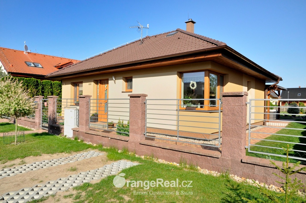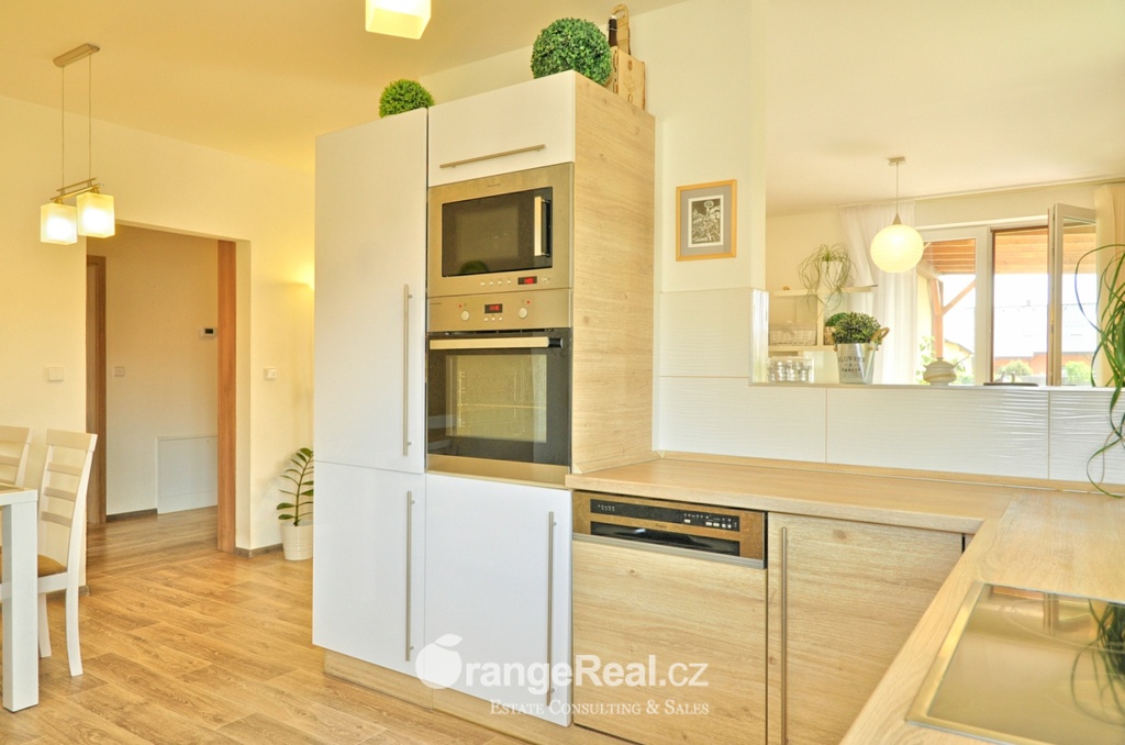 Výhradně nabízíme k prodeji novostavbu rodinného domu , dispozičně 4+kk, o podlahové ploše 118m2, v bonitní a velmi vyhledávané lokalitě Pardubice - Nemošice. Dům byl vystavěn v roce 2014, na pozemku 1029m2. Dům disponuje 3 samostatnými pokoji, obývacím pokojem, kuchyňským zázemím a jídelním prostorem. Zastřešená terasa je přístupná z obývacího pokoje /kterému dominují krbová kamna/ a sousedící místnosti. Všechny místnosti, včetně koupelny s toaletou jsou přístupné z průchozí chodby. Další toaleta je umístěna u zádveří. Dům je vsazen do prostorné, pečlivě udržované zahrady. K domu dále přináleží přístřešek nad parkovacím místem a zahradní domek. Stavebním prvkem zdivo Porotherm, střecha KM Beta, okna plast, podlahy - dlažba a plovoucí. Vytápění primárně ele. podlahové po celé ploše domu. Ohřev vody a teplo zajišťuje ele kotel /snížená sazba na odběr ele./. Nízké náklady na provoz domu. Parkování zajištěno na vlastním pozemku před domem. Dobrá dostupnost do centra města - MHD 150m, obchod v místě, veškerá další občanská vybavenost v dojezdové vzdálenosti 7min. V obci probíhají průběžné práce na rekonstrukcích komunikací. Termín pro realizaci nové příjezdová komunikace k domu je stanoven na začátek roku 2019. Doplňující informace u obchodníka společnosti. Doporučujeme navštívit virtuální prohlídku na stránkách naší společnosti.