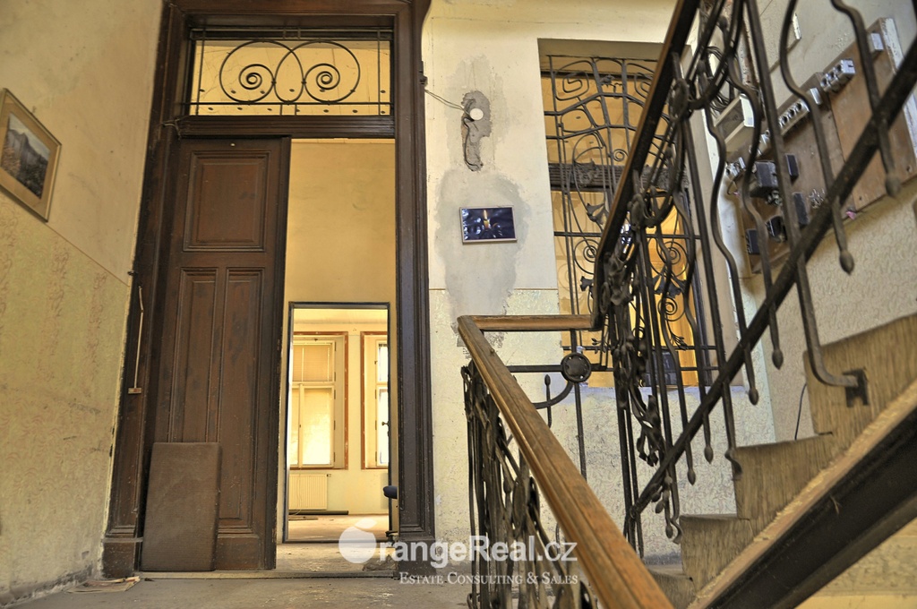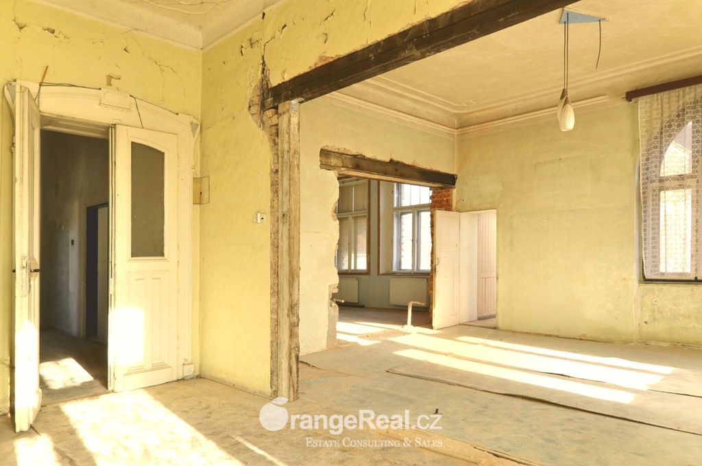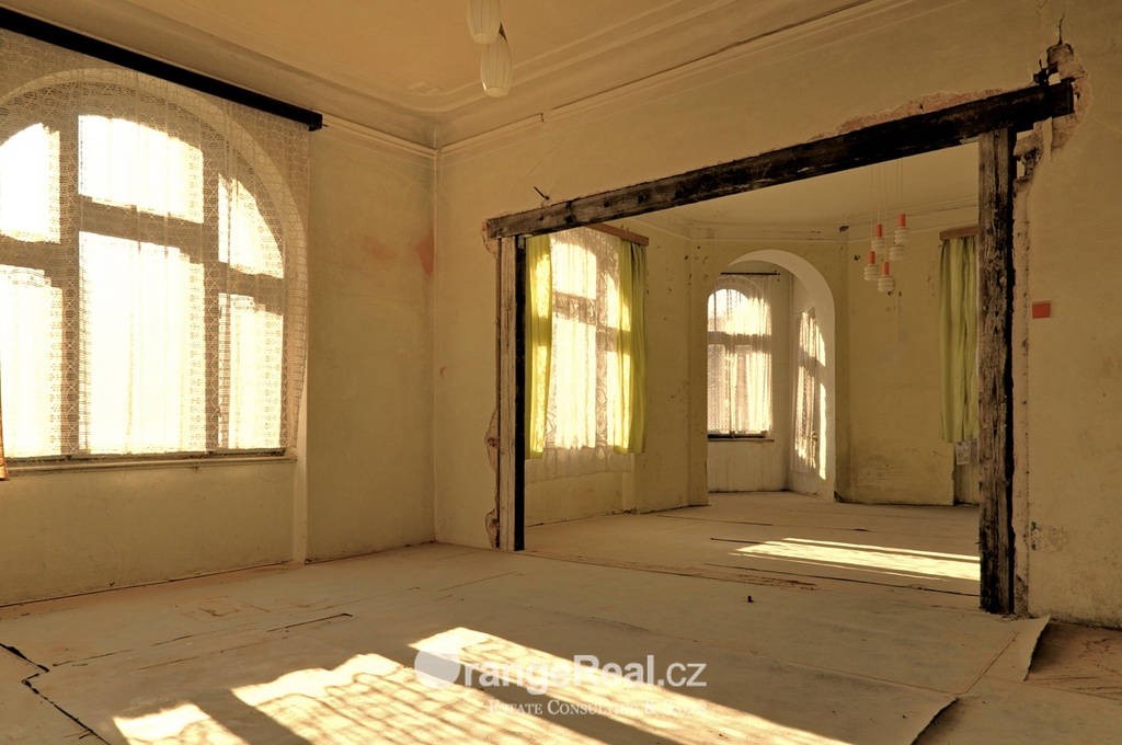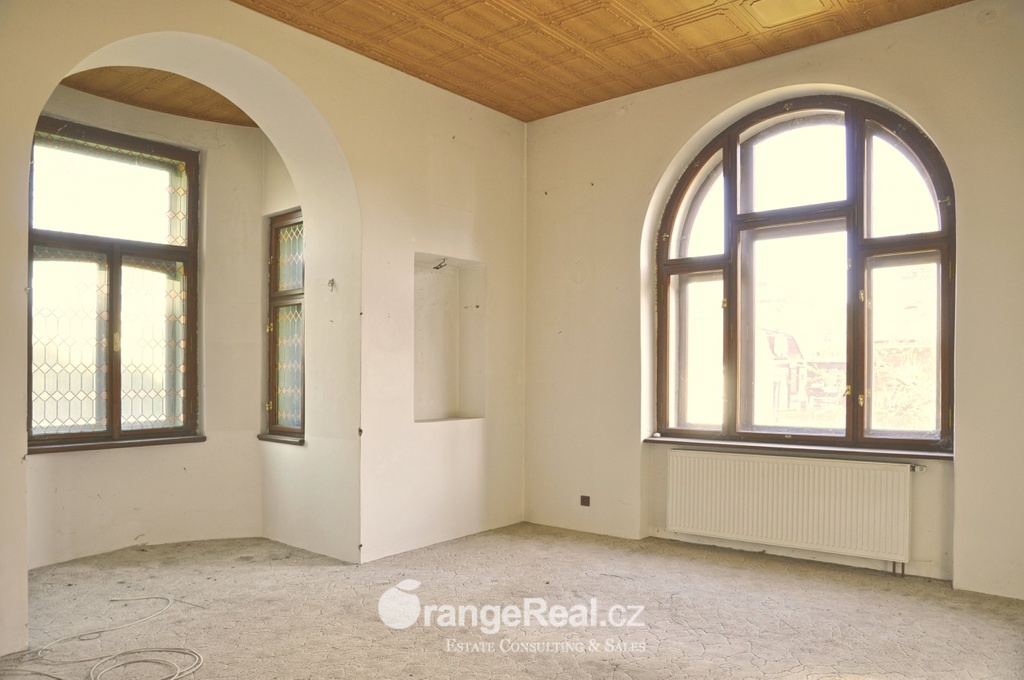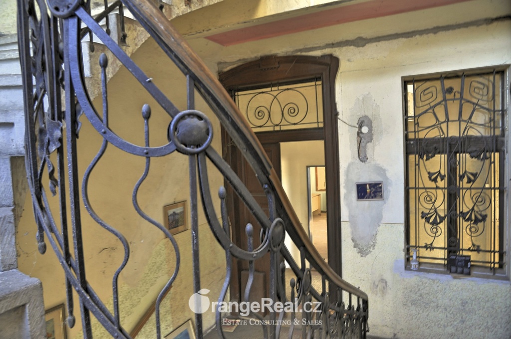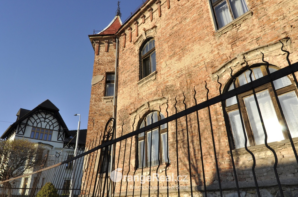 V zastoupení klienta nabízíme k prodeji unikátní pozdně secesní vilu v Pardubicích, umístěnou ve vilové čtvrti Bílého předměstí, na rohu ulic Sakařova a Wintrova. Vila byla dle dokumentace dokončena 31. 12. 1919 a je umístěna na pozemku o celkové výměře 1.043m2. Zastavěná plocha domu je 237m2, celkově tak vila nabízí 711m2 hrubé podlahové plochy ve třech nadzemních podlažích včetně půdy, dům je částečně podsklepen. Součástí zastavěného nádvoří je cca 40m2 plochy bývalé dvou garáže. Domu dominuje pískovcové točité schodiště, které dispozičně člení dům následovně: 1. PP sklep se sníženým stropem (umístěný plynový kotel), 1. NP zvýšené, samostatná bytová jednotka o cca 190m2 s dvěma přístupy na zahradu, 2. NP samostatná bytová jednotka o cca 190m2 s balkonem, 3. NP – velkorysá půda s potenciálem vybudování dalších obytných prostor. Dle zápisu v KN vila disponuje 6 bytovými jednotkami (podstatné pro budoucí kolaudaci a rekonstrukční souvislosti). Stavebním prvkem základů a podezdívky je kámen, zbytek konstrukce cihla, stropy dřevěné, okna původní dřevěná špaletová, schodiště pískovcové, krov dřevěný, střecha pálená taška. Dům je napojen na všechny sítě (voda, elektřina, kanalizace, plyn), je v původním stavu vyžadujícím rekonstrukci, která byla částečně započata.